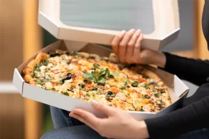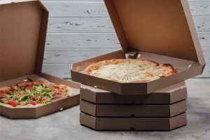 Caixa de Pizza Oitavada ou Octagonal. As caixas oitavadas ou octagonais são indicadas para manter a crocância por mais tempo.